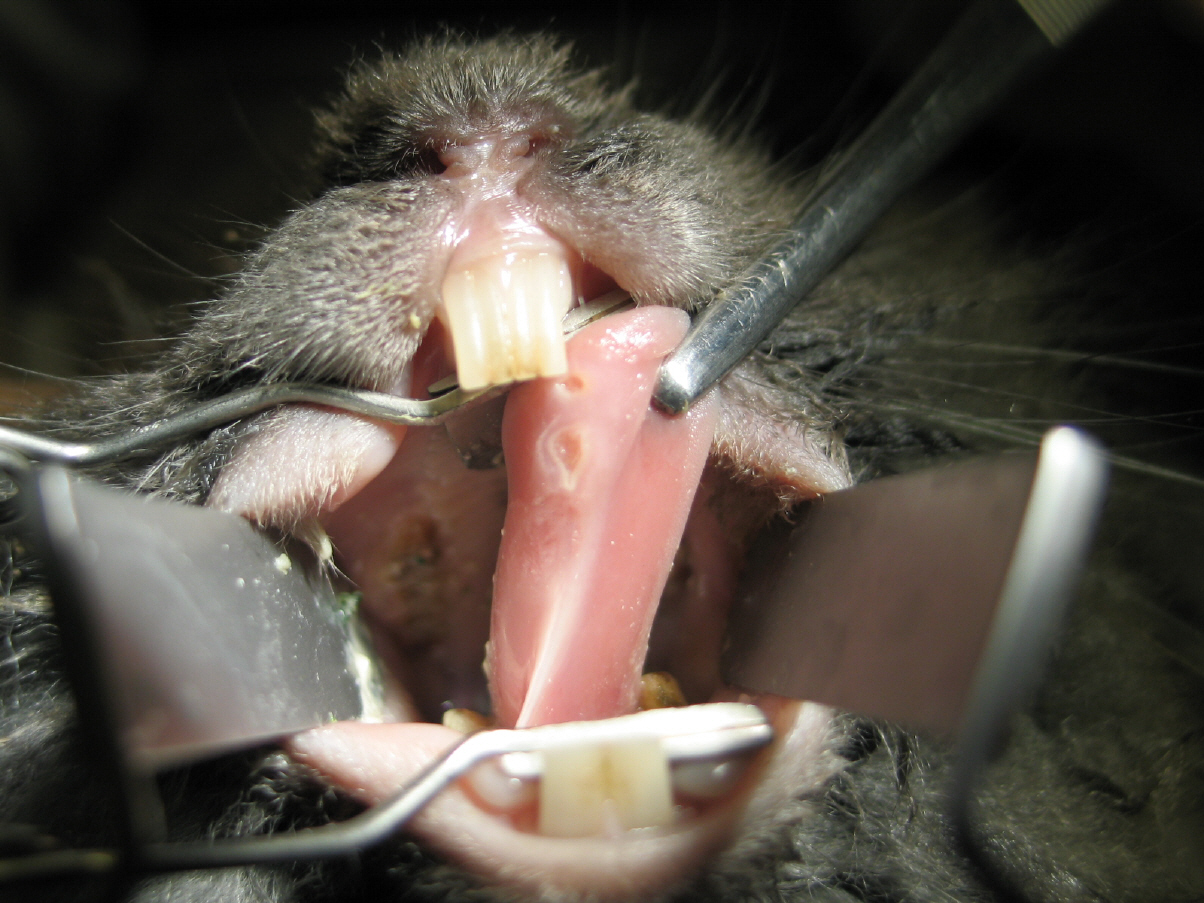 Um eine Zahnerkrankung diagnostizieren zu können , muss die Maulhöhle sorgfältig untersucht werden. Ein exakter Überblick kann jedoch nur unter Sedierung / Narkose des Tieres erfolgen. Sollten sich Zahnspitzen oder Fehlstellungen finden, müssen Röntgenbilder angefertigt werden. Überwachsene Scheidezähne werden mit einer Trennscheibe / Fräser gekürzt. Das Abknipsen mit einer Zange führt meist zum Splittern der Zähne und sollte vermieden werden. Spitzen und Kanten an den Backenzähnen sowie überwachsene Backenzähne werden mit einer speziellen Fräse abgeschliffen.