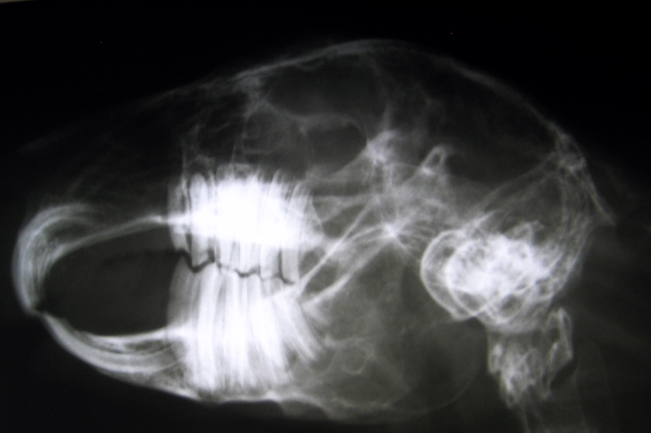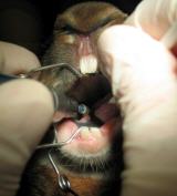 Ein weiteres Symptom einer Zahnerkrankung kann ein- oder beidseitiger Augenausfluss sein. Der Tränennasenkanal der Tiere verläuft unmittelbar oberhalb der Zahnfächer des Oberkiefers. Sind die Zähne fehlgestellt, so kann der Tränennasengang mechanisch eingeengt werden, so dass Tränenflüssigkeit schlechter abfließt. Bei Entzündungen oder Vereiterungen der Zähne kann der Tränennasenkanal einbezogen werden, so dass eitriger Augenausfluss resultiert.